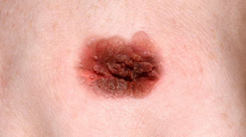 육안으로도 쉽게 찾을 수 있으며 닭 벼슬 모양으로 뾰족 사마귀라 불리기도 하며 검은색을 띄기도 하는데